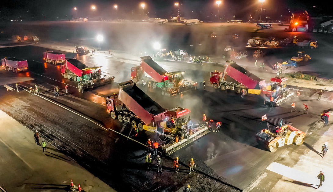 70 days has passed by since the official commencement of asphalt concrete construction for the runway of the Tribhuvan International Airport on Apr. 17th, 2019, and the phased target has been successfully fulfilled.Up to now, the milling replacement layer with 50000T asphalt concrete for the entire runway, the runway surface layer with 27000T asphalt concrete, the Taxiway B with 20000T asphalt concrete have been completed. Besides, 2417 out of 3050 meters of the runway surface layer have been completed, which is significantly conducive to the runway quality improvement.